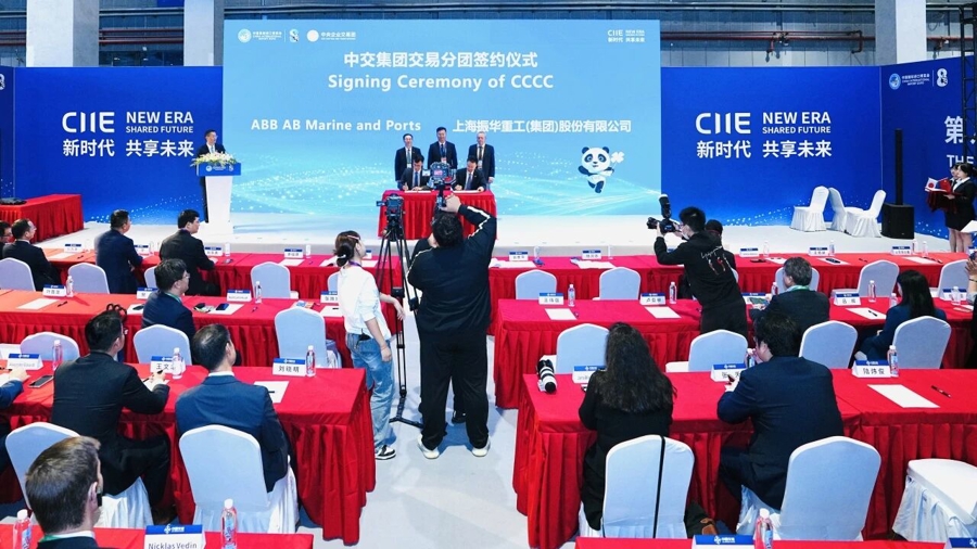 11月7日,上海振华重工集团(以下简称“振华重工”)在第八届中国国际进口博览会中交集团进口采购现场签约仪式上,与西门子、ABB、安川电机等12家海外供应商完成集中签约,敲定新一轮进口采购合作。