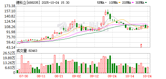 证券时报·数据宝统计显示,德科立今日收盘价为109.59元,上涨4.30%,日换手率为5.21%,成交额为8.82亿元,全天主力资金净流出778.72万元,近5日该股累计上涨11.04%,近5日资金合计净流入1.21亿元。